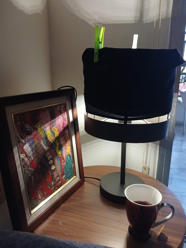 والعودة إلى ماض زياراتنا المُتكررة لأروقته لم تعد مُجدية. وذكرياتي الهاربة من ومضات النور، تفضحني، أنا التي أحاول الإختفاء خلف ثوب فقدان الحس. خلف اللامبادير الموديرن، لوحة صنعتها بنفسي، بخربشات تُشبهني عندما كنت لا أزال على قيد الحياة. ألوان غير مُتناسقة، وعشرات مشاهد تمتزج بعضها مع بعض من دون أن تتمكن من سرد قصة مفيدة.