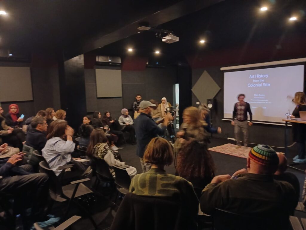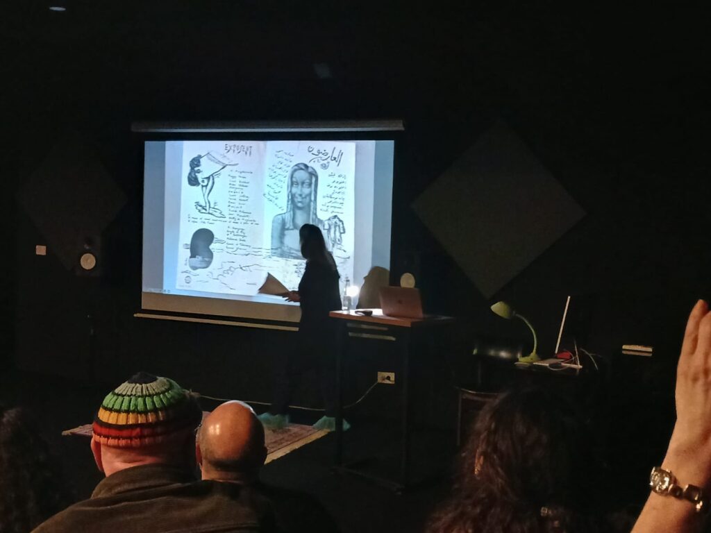 في القاعة التي ستحسم مصير تاريخ الفن وتدخل الاستعمار في مساره(وصلبه)، يعزف رئيس قسم الفنون الجميلة وتاريخ الفن في الجامعة الأميركية، الفنان والكاتب وليد صادق، ومضات نغميّة قبل بدء المحاضرة.